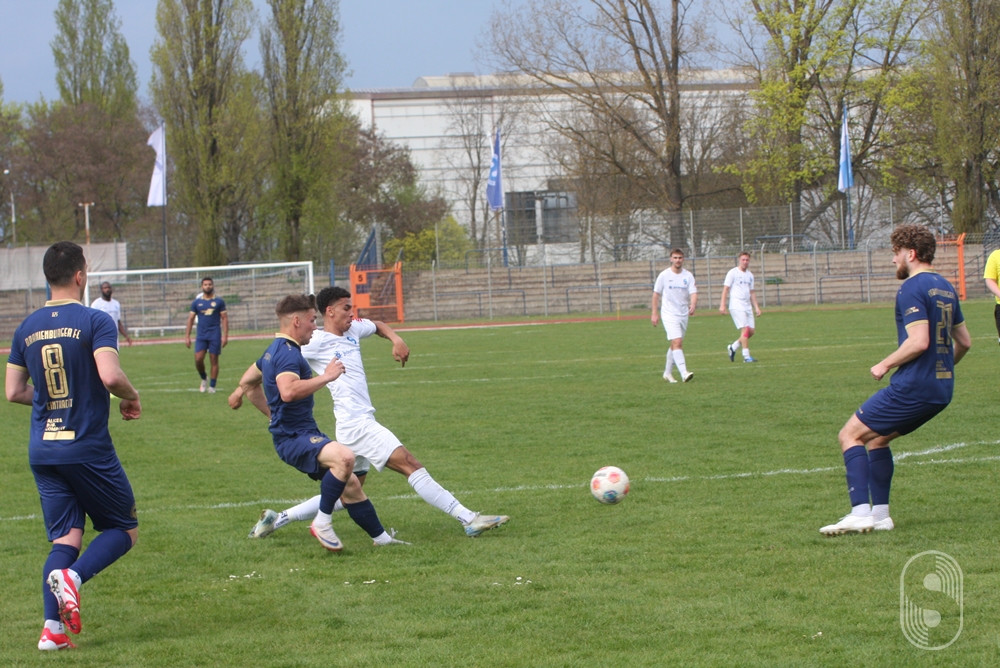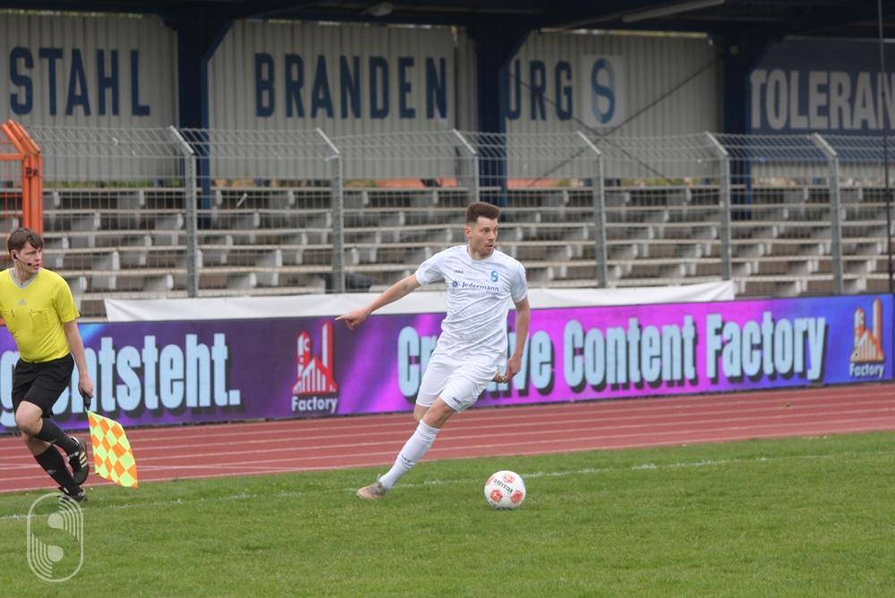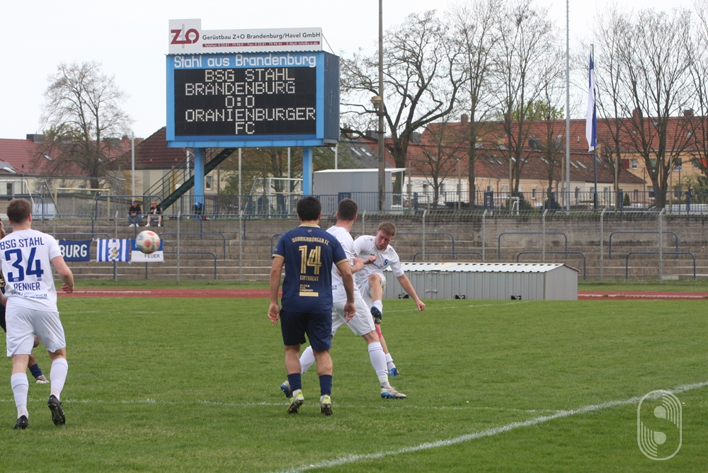 Nach diesem 22. Spieltag in der Brandenburgliga kann man der BSG Stahl Brandenburg eine Ergebniskrise konstatieren, aber keine spielerische. Auch im siebenten Spiel der Rückrunde gab es keinen Erfolg zu feiern, der Oranienburger FC Eintracht 1901 entführte mit dem 0:0 im Stadion am Quenz einen aus ihrer Sicht glücklichen Punkt. Über die mehr als 90 Minuten erarbeiteten sich die Gäste drei Möglichkeiten. Bei der ersten in der 7. Minute vereitelte Romain Joel Siabe Tegefouet mit einer Grätsche kurz vor dem Sechzehner, dass der Pass den einschussbereiten Oranienburger erreicht. Nach der Pause gab es einen Kopfball, der aber ein paar Meter über das Tor ging und in der Nachspielzeit setzte Abdul-Hamid Saadaev zu einem spektakulären Fallrückzieher an, den Stahl-