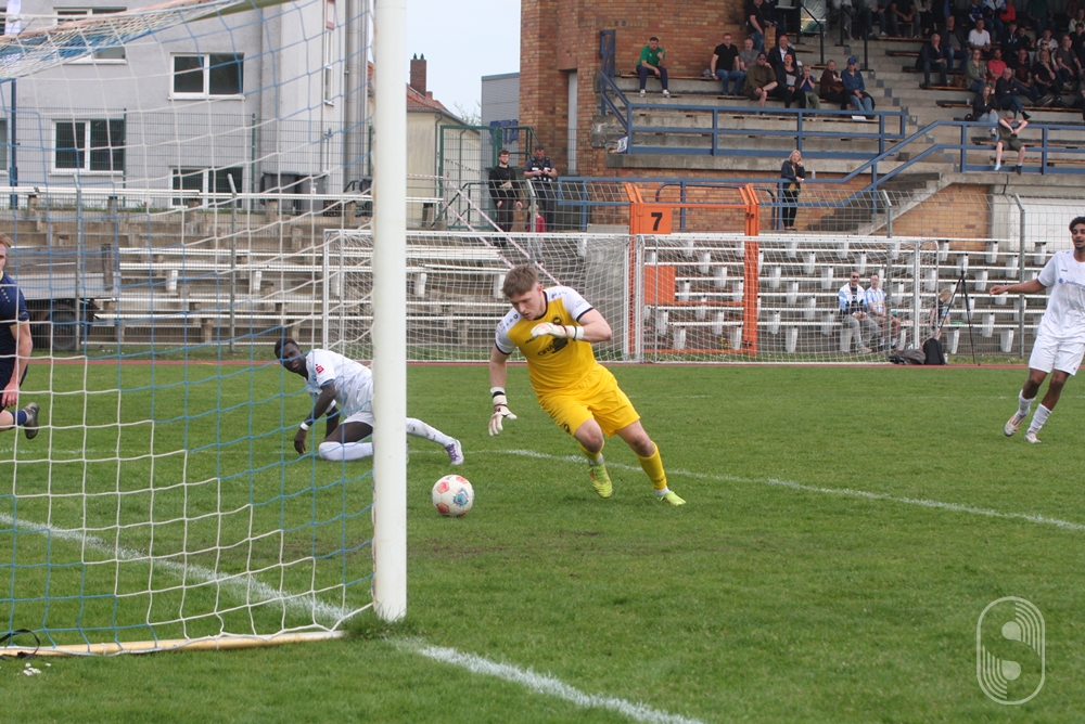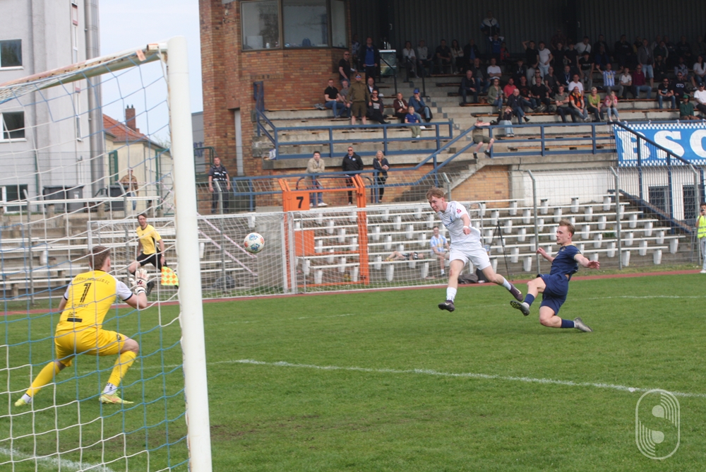 Während die Gastgeber auf einen Treffer drängten, waren die Gäste nur darauf bedacht ihren Kasten sauber zu halten. Sie machten die Räume in ihrer Hälfte eng, doch in der Schlussphase des ersten Durchgangs gab es wieder gute Gelegenheiten für die die Stahl-Elf. Jatta setzte sich in der 40. Minute wieder durch, scheiterte aber an Warmuth, der Abpraller kam zu Erik Sauer, dessen Versuch geblockt wurde. Kurz darauf war Warmuth unfreiwilliger Passgeber für Müller, der sofort abschloss, aber genau in die Arme des Keepers. So ging es torlos in die Kabinen. Mit dem Ergebnis konnte die Mannschaft hadern, aber nicht mit ihrem Auftritt. Sie nahm sich in der Pause vor, mit einfachen und