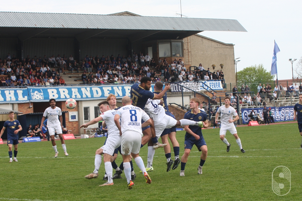 So blieb es beim torlosen Unentschieden, was die Brandenburger schon frustrierte. Torwart Baitz klagte lautstark, dass seine Kollegen das Ziel nicht treffen: „Zwei Tore in der Rückrunde, das kann doch nicht wahr sein.“ Leider doch, aber unverkennbar war der spielerische Aufwärtstrend der Stahlmannschaft. Dies gab Andreas Koch auch im Spielerkreis kund: „Wie erarbeiten uns die Möglichkeiten, doch momentan fehlt noch das Matchglück. Das kommt aber wieder und warum nicht im nächsten Spiel.“ Dies wäre das Derby beim Ortsnachbarn BSC Süd 05 am kommenden Sonnabend (25. April), das um 14 Uhr angepfiffen wird.