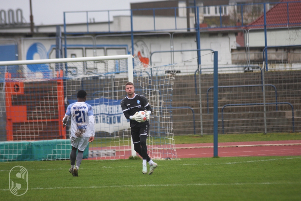 Doch mit der Zeit profitierten eher die Neuruppiner von seiner Art der Spielleitung. In mehreren Situationen wurden die Stahl-Angreifer knapp vor der Strafraumgrenze aber auch dahinter mehr als hart attackiert, ohne dass es geahndet wurde. In der 72. Minute ließ sich Hoyer nicht aufhalten, drang rechts in den Sechzehner, seinen Schuss wehrte Ivan Tiurin zur Ecke ab. Fast im Gegenzug erspielten sich die Neuruppiner ihre erste Chance nach dem Wiederanpfiff, doch Max-Bennet Säger klärte im Liegen vor dem eigenen Tor. Kurz darauf fiel dann doch der unerwartete Ausgleich. Nach einem Eckball kamen die Gäste zu einer Kopfballstafette im Stahl-Sechzehner, die auf der linken Seite