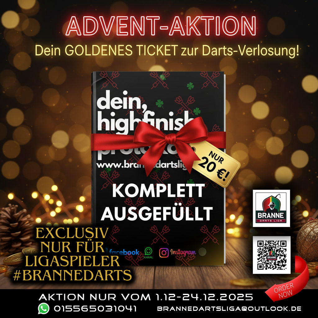 Vergiss nicht die exklusive Advents-Aktion! Sichere dir bis zum 24. Dezember das Komplett Ausgefüllte Highfinish-Protokoll für nur 20 € und nimm garantiert an der Endverlosung teil – ganz ohne den Horror, ein Glückswort zu vergessen!