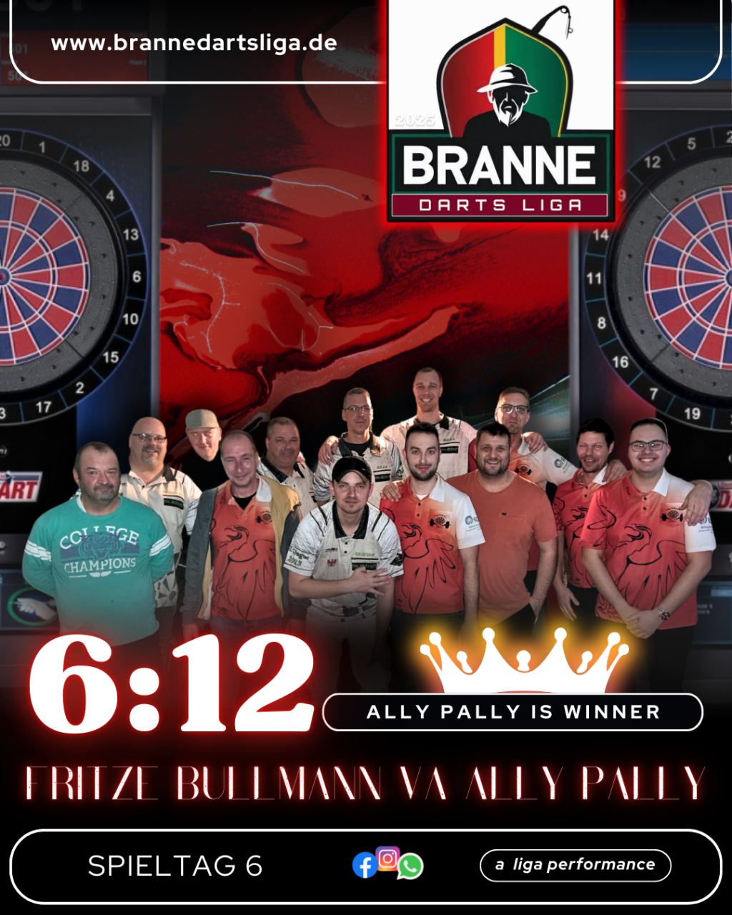 Ally Pally zeigte ebenfalls keine Gnade und besiegte den ehemaligen Aufsteiger Fritze Bullmann 12:6 (26:16 Legs). Fritze Bullmann fällt nach seiner dritten Niederlage aus den Top 3.