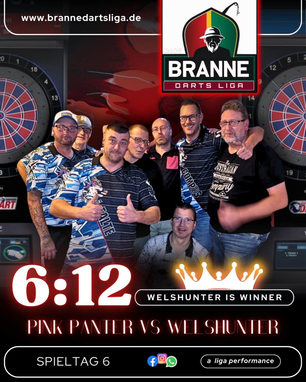 Rädeler Welshunter 1 festigte seine Position in den Top 3 durch einen klaren 12:6-Satzsieg (28:15 Legs) gegen Pink Panter. Rädeler Welshunter 1 kletterte damit auf 8 Punkte und festigt den dritten Platz.
