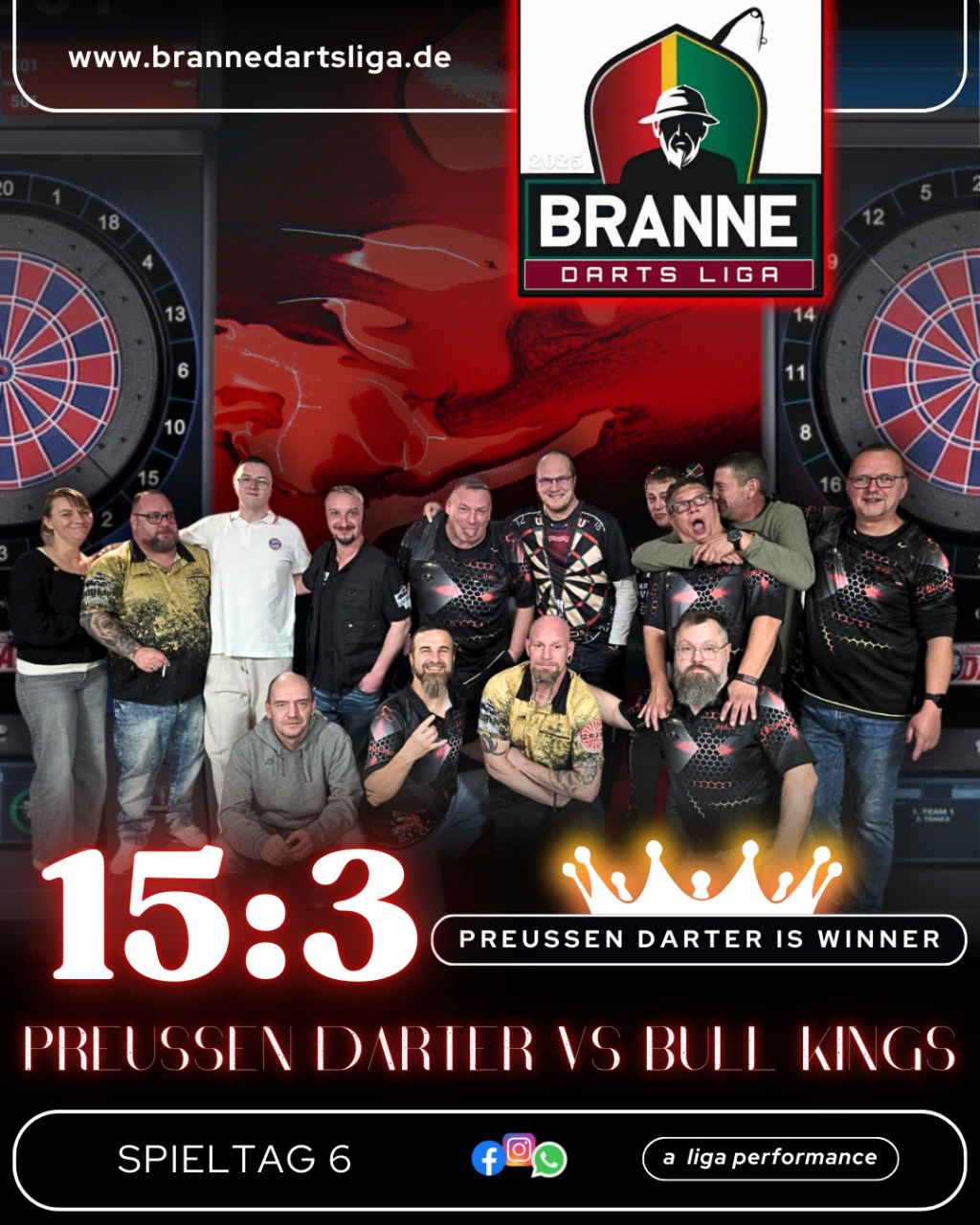 Der unheimliche Wettlauf an der Spitze geht weiter: Die Preussen Darter und Ally Pally sind die unantastbaren Schatten, die mit 4-0-0 Siegen und 12 Punkten die Liga dominieren. Die Preussen Darter vollzogen eine makabre Exekution und schickten die Bull King’s mit einem gnadenlosen 15:3 (31:12 Legs) in die Tiefen des Kellers.