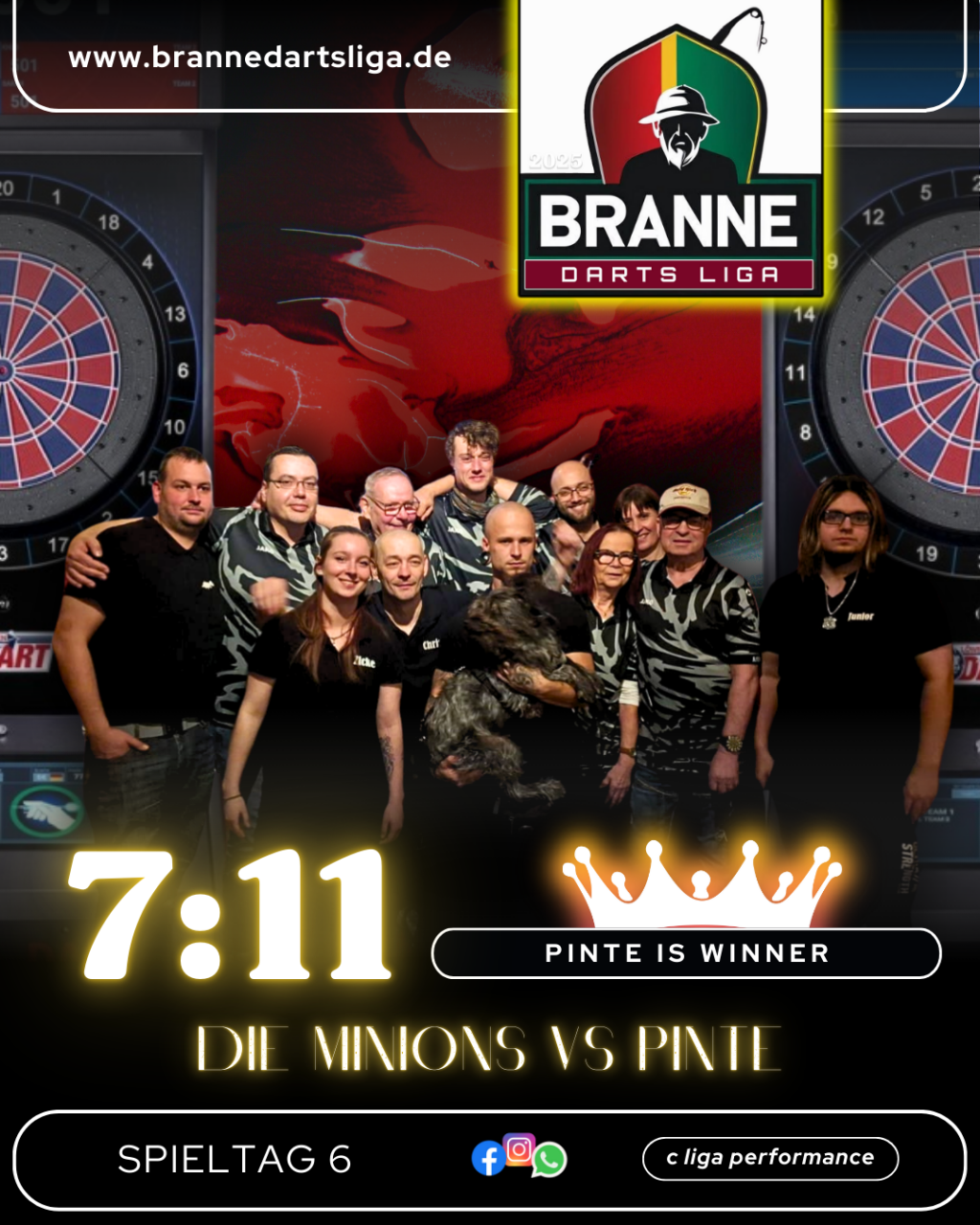 Auch Pinte feierte einen wichtigen 11:7 (26:16 Legs) Sieg gegen Die Minion’s und etablierte sich mit 12 Punkten auf dem dritten Platz.