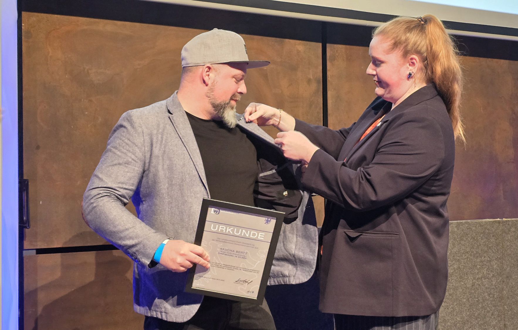Zeit für geselliges Miteinander braucht es auch und die wird sich stets zum Jahresanfang genommen, zumal der Neujahrsemfang auch dazu dient, neue Mitglieder vorzustellen, gestandene Mitglieder in den Kreis der Förderer aufzunehmen und Auszeichnungen vorzunehmen. Diesmal erhielt Sascha Bertz die silberne Ehrennadel der Landeswirtschaftsjunioren, verbunden mit einem großen Dank für den über zehnjährigen Einsatz im Vorstand.