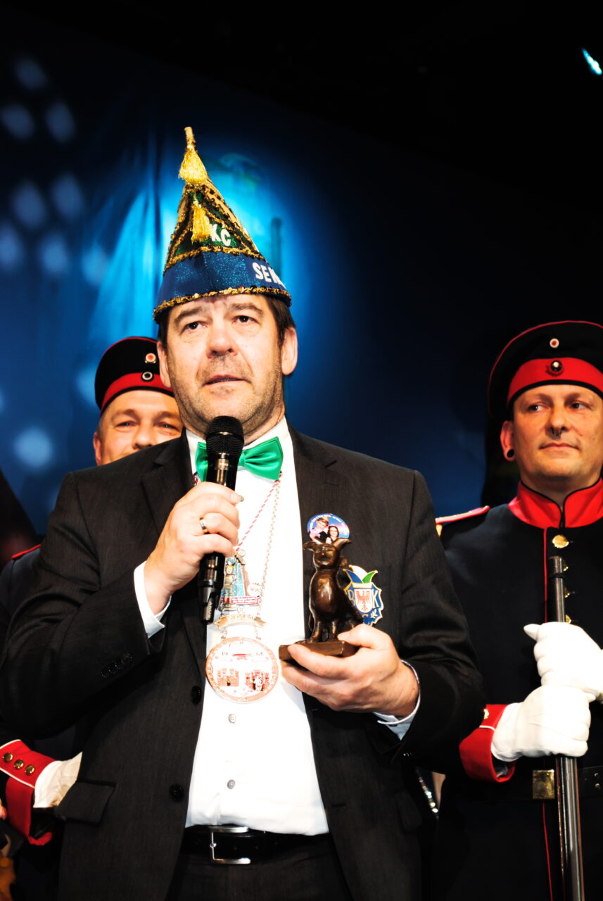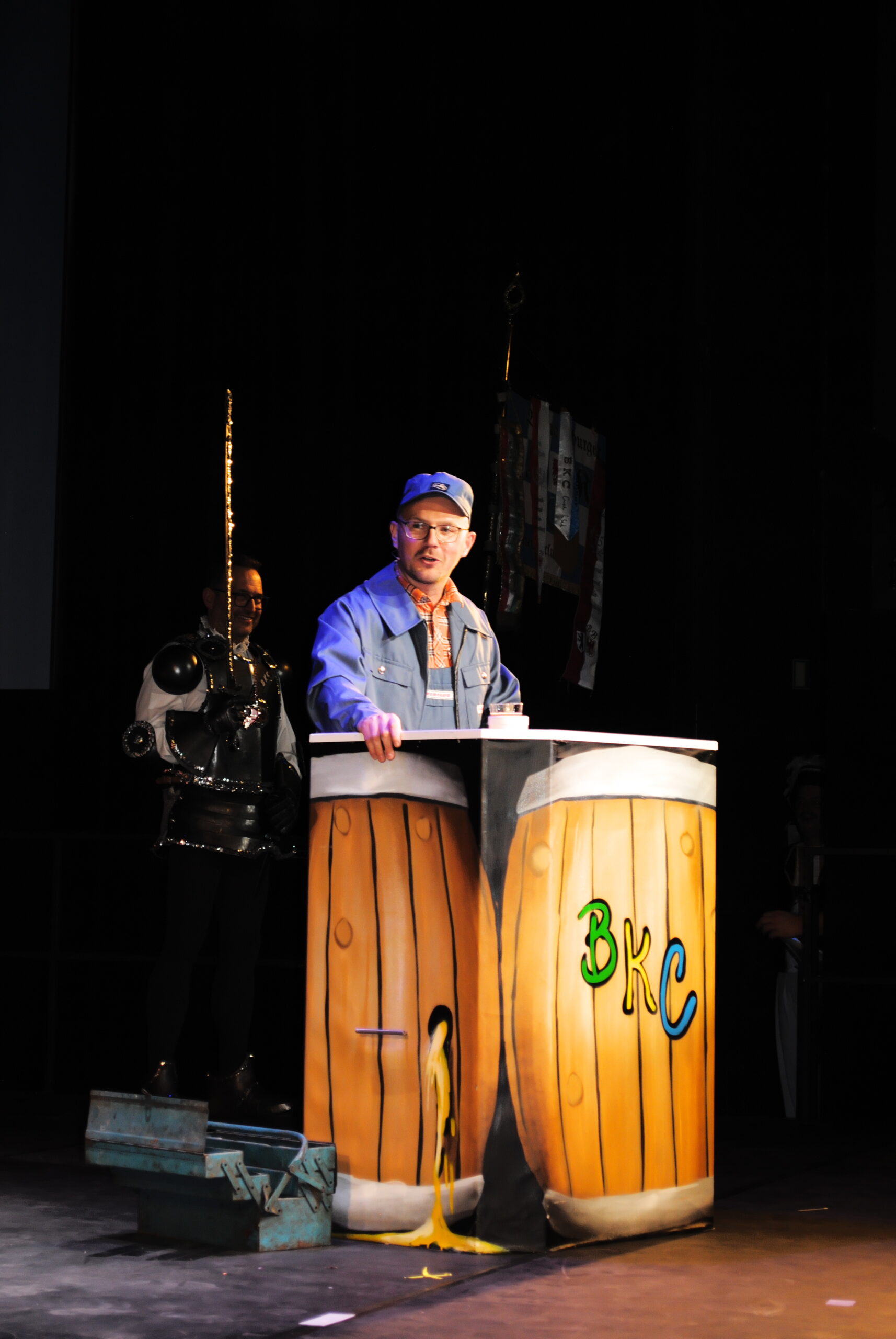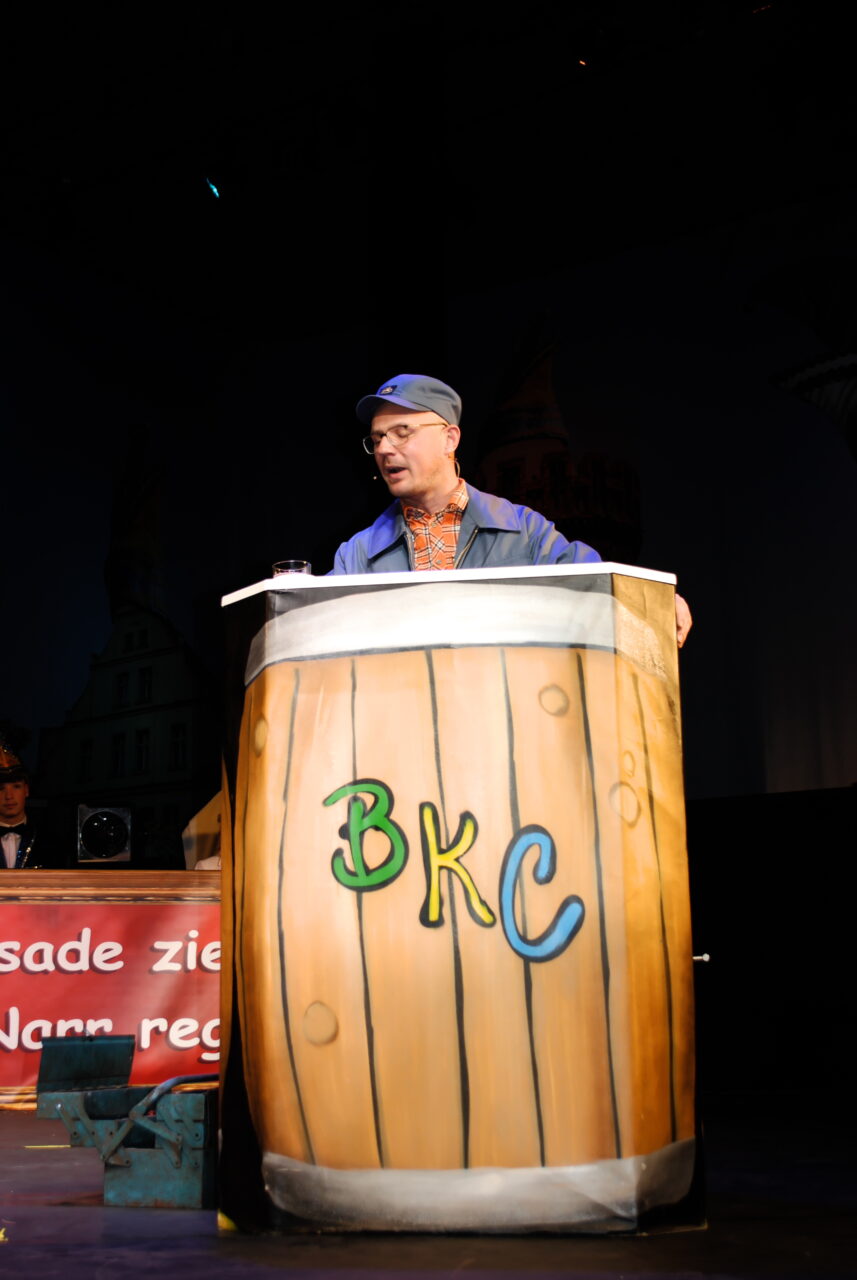 Auch politische Satire durfte an diesem Abend nicht fehlen. Der zukünftige Oberbürgermeister Daniel Keip trat als „Monteur des BER“ in die Bütt und sorgte mit
