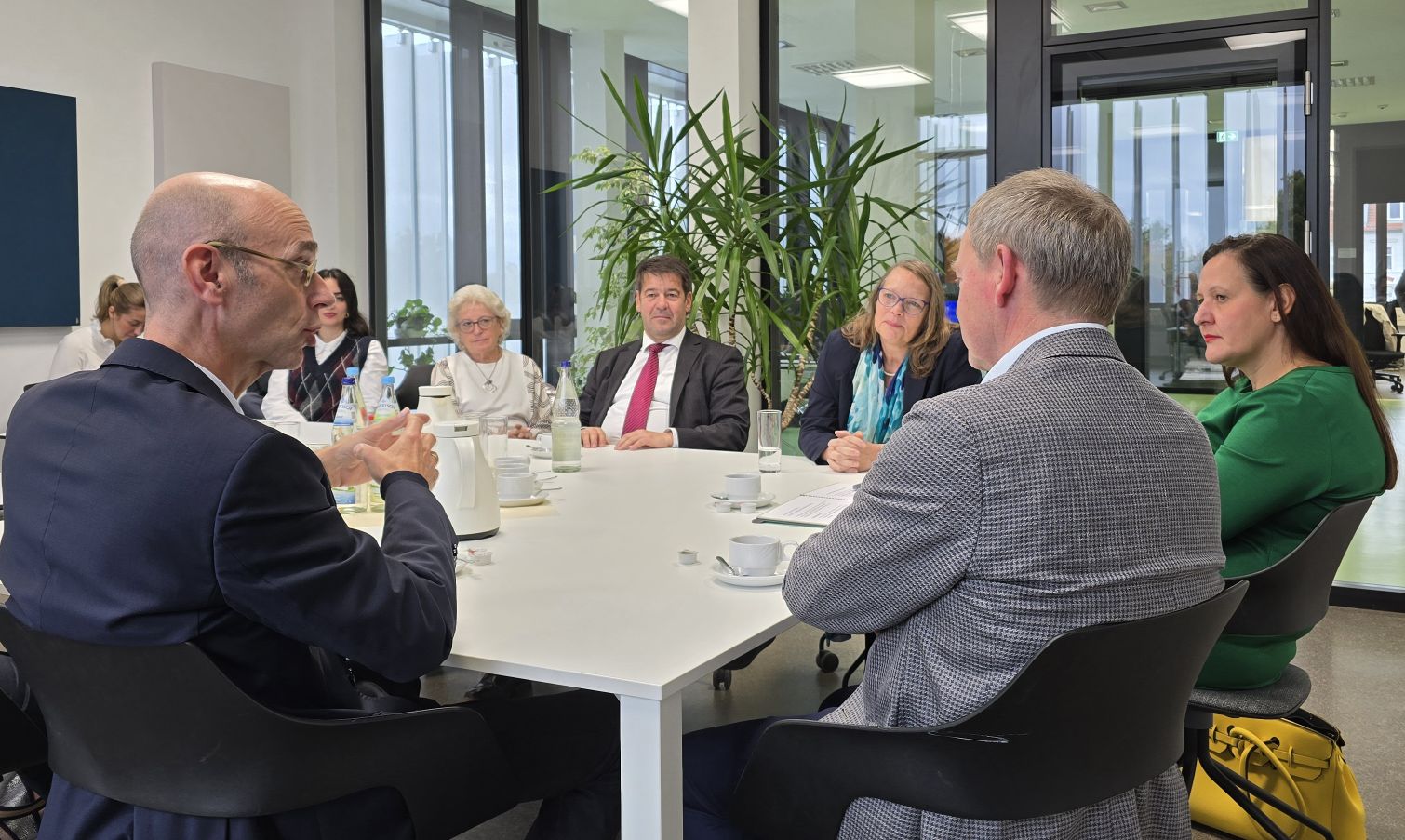Wissenschaftsministerin Dr. Manja Schüle hat der Medizinischen Hochschule Brandenburg „Theodor Fontane“ (MHB) des Universitätsklinikums Brandenburg persönlich den Bescheid zur Verlängerung der staatlichen Anerkennung sowie zur Verleihung des Promotions- und Habilitationsrechts in die Stadt getragen. Vor der feierlichen Übergabe kam sie im Zentrum für Translationale Medizin Brandenburg – das zentrale Forschungsgebäude auf dem MHB-Campus – ins Gespräch mit MHB-Präsident Prof. Dr. med. Dr. h.c. mult. Hans-Uwe Simon und MHB-Kanzler Dr. Gerrit Fleige, mit Prof. Dr. Christine Holmberg, Dekanin der Fakultät für Medizin und Psychologie, sowie mit Universitätsklinikum-Geschäftsführerin Gabriele Wolter und Oberbürgermeister Steffen Scheller, der auch stellvertretender Aufsichtsratsvorsitzender der MHB ist.