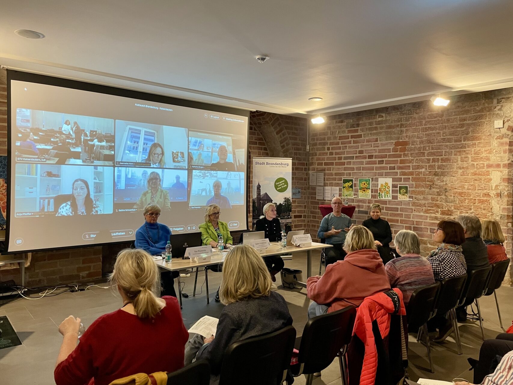 Auf Brandenburger Seite hat Jeannette Horn, Gleichstellungsbeauftragte der Stadt Brandenburg an der Havel, die Veranstaltung moderiert. Sie wurde begleitet von Ilse Promnitz (Bereich Gesundheit), Sabine Schönfuss (Bereich Wirtschaft) und Dr. Katharina Burges (Bereich Kunst und Kultur).