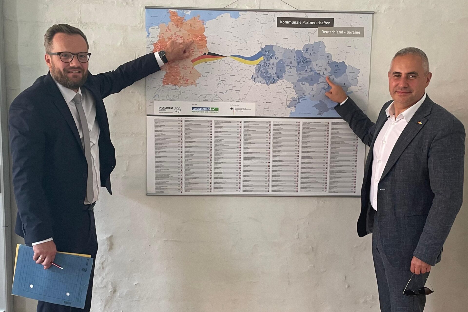 Die Delegation wurde vom Bürgermeister der Stadt Samar, Serhii Reznik, angeführt. Er wurde begleitet von Yurii Datchenko, Leiter der Abteilung Verkehrsinfrastruktur, und Anna Khmelovska, der internationalen Koordinatorin der Stadt. Serhii Reznik und Oberbürgermeister Steffen Scheller hatten sich bereits am 28.02.2023 anlässlich eines Treffens von Vertreterinnen und Vertretern deutscher und ukrainischer Städte in Böblingen getroffen. Entsprechend groß war bei beiden die Vorfreude auf ein Wiedersehen.