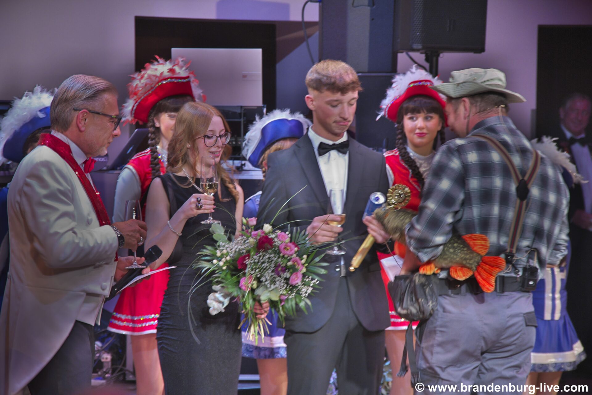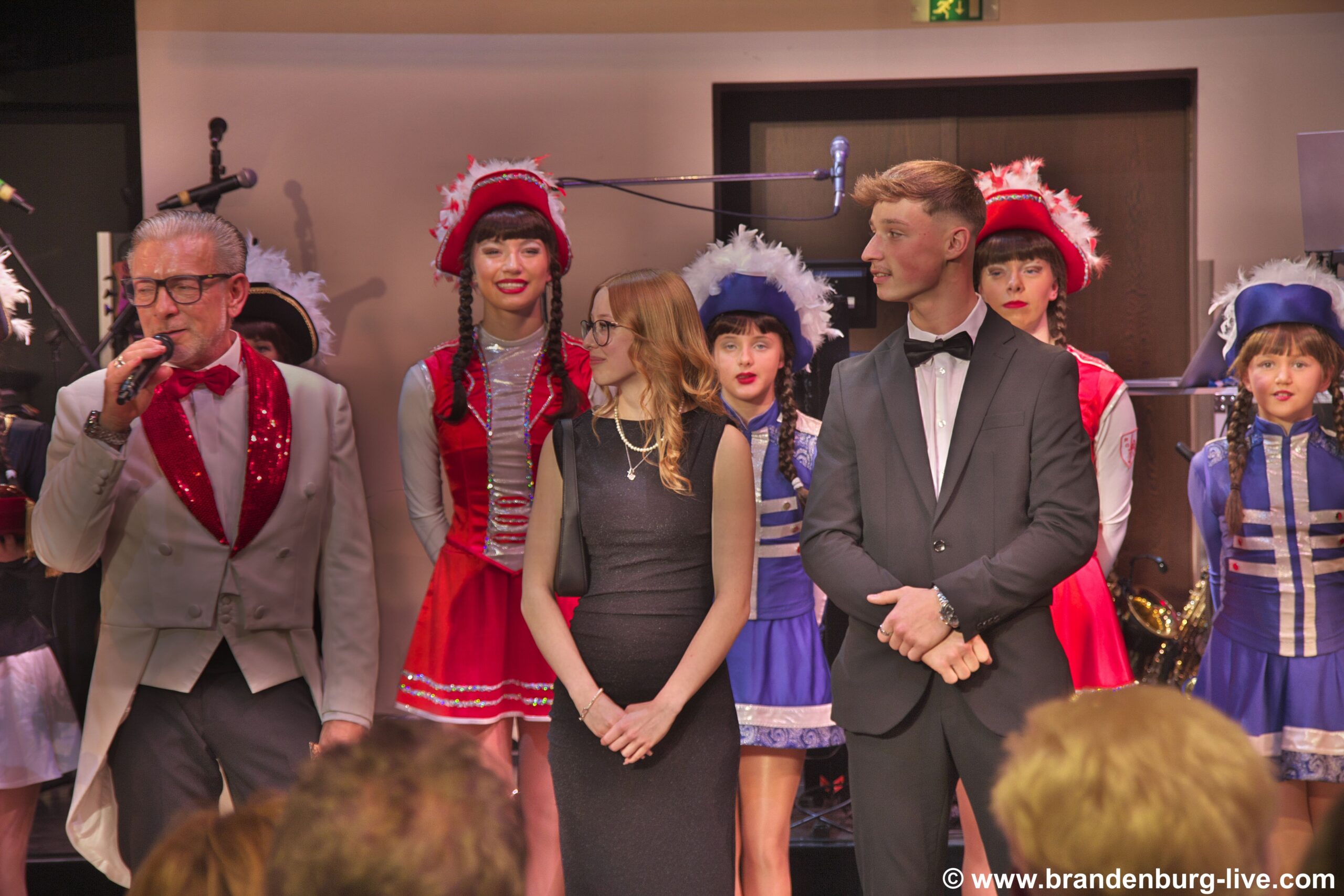 Das Prinzenpaar Allegra I. und Seine Tollität Maurice LXII. strahlte im Mittelpunkt des Abends, das Kinderprinzenpaar Prinz Adrian und Prinzessin Zelda konnten leider aus rechtlichen Gründen einer Abendveranstaltung nicht teilnehmen.