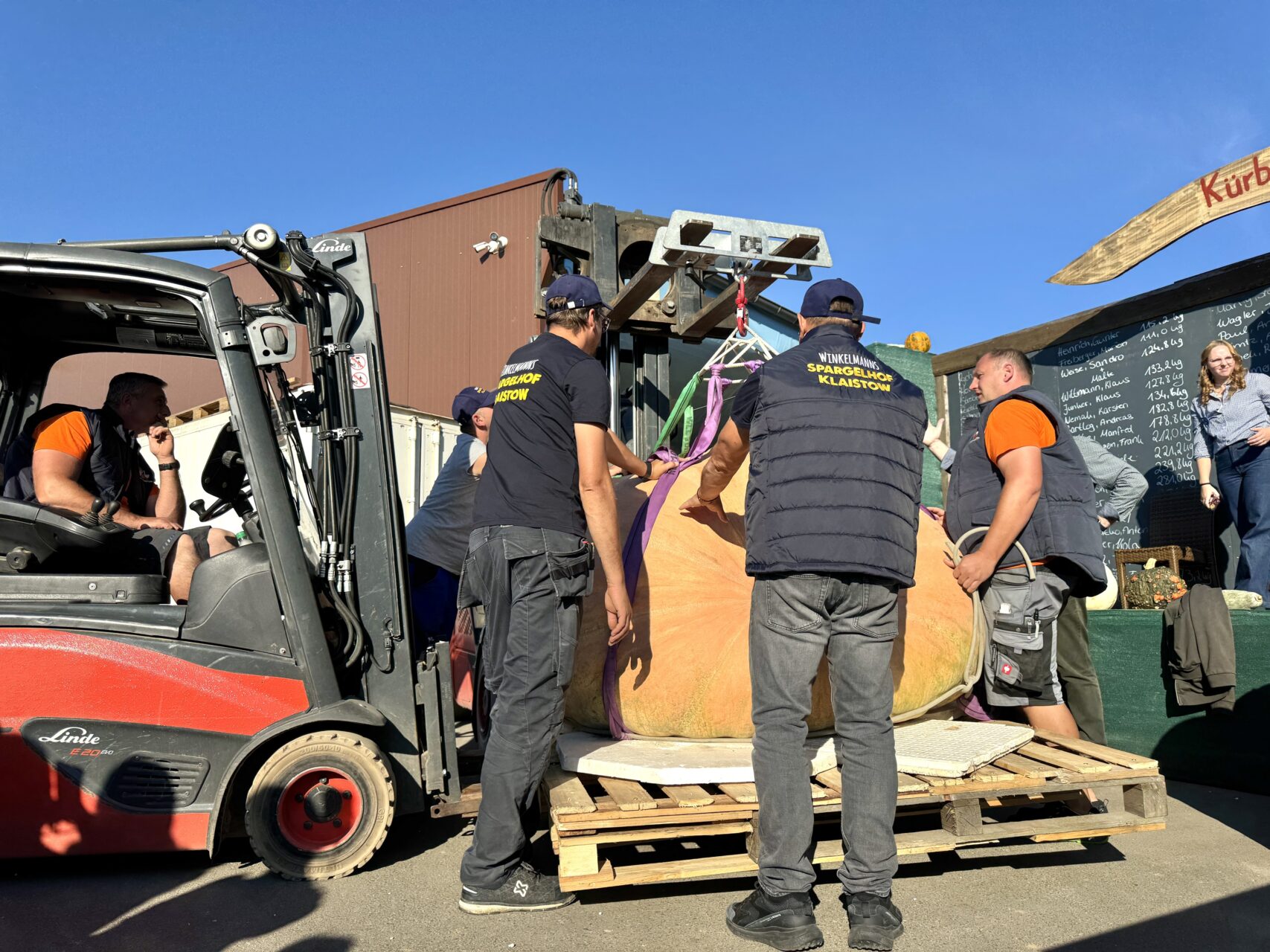 Die Große Kürbiswiegemeisterschaft in Klaistow gewann heute einen Kürbis aus dem Beelitzer Ortsteil Elsholz mit gewaltigen 1.034,8 kg