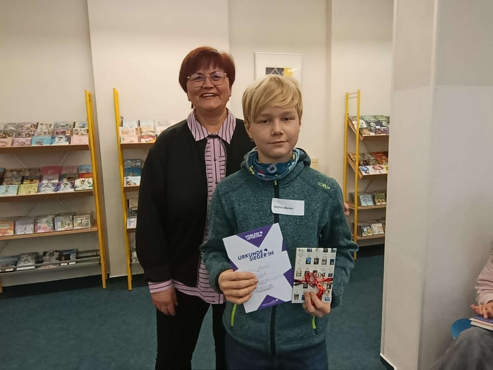 Für das junge Vorlesetalent geht es im Bezirksentscheid weiter und vielleicht kann er zum Landesentscheid am 20. Mai 2026 wieder in der Fouqué-Bibliothek begrüßt werden.