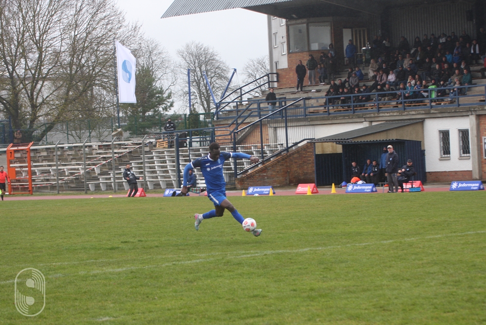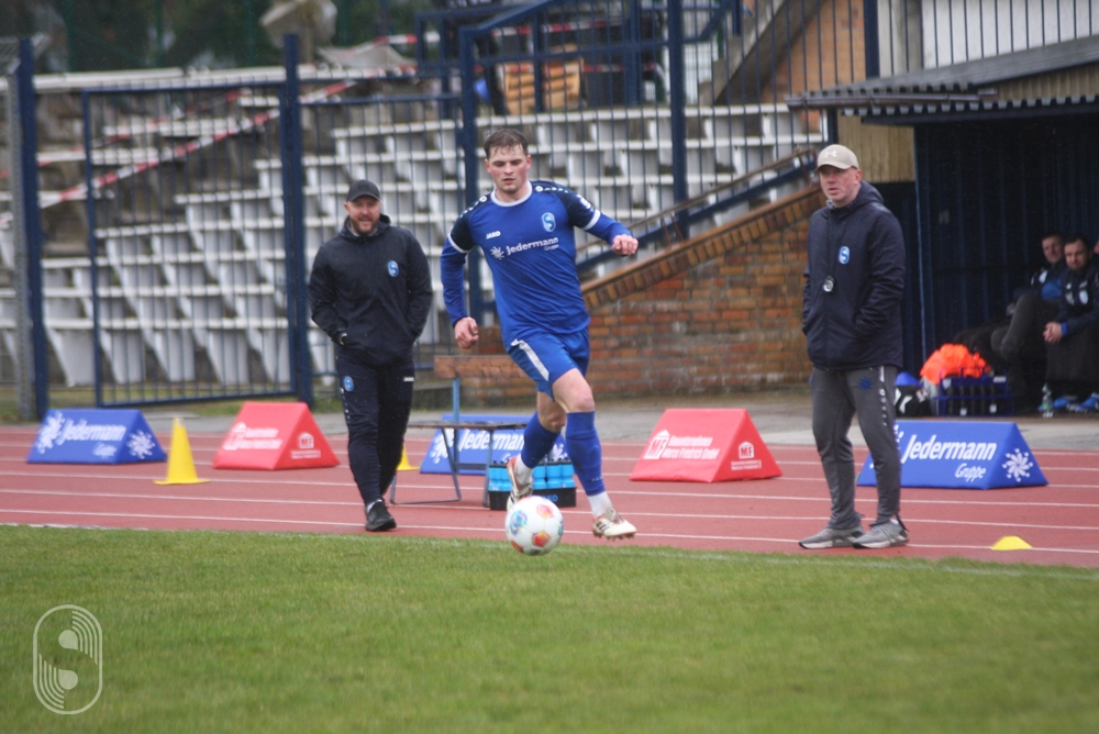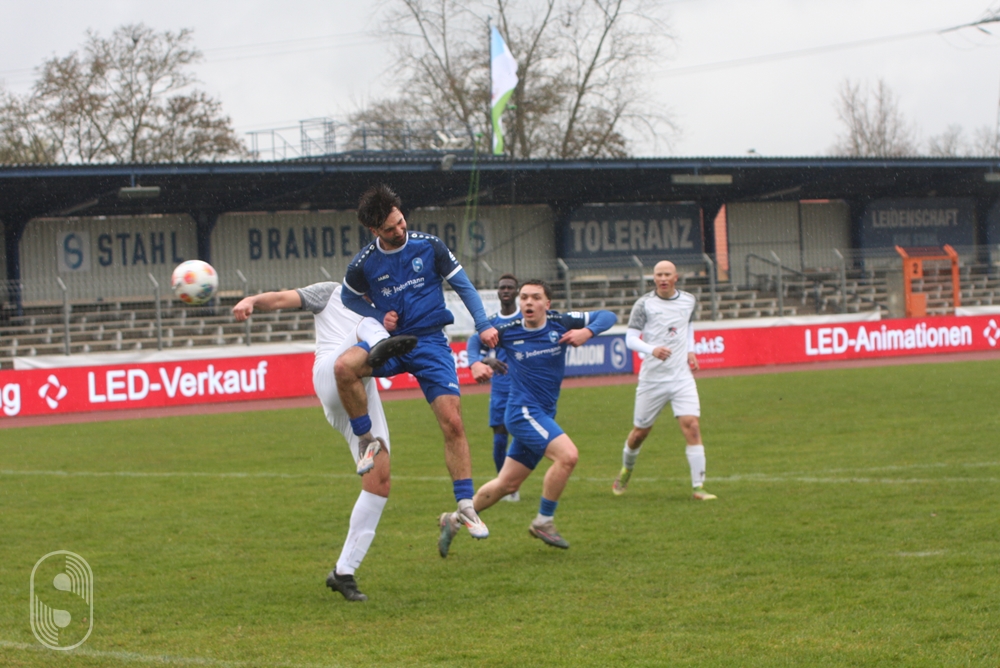 In der 21. Minute ging es nach Ballverlust im Mittelfeld schnell über die linke Seite der Blau-Weißen. Die scharfe Hereingabe jagte Jose Raimundo Silva Magalhaes unter die Latte zum 1:0. Ausgerechnet der Ex-Stahlspieler, der im Winter nach Petershagen wechselte, vollendete die einzige Gästechance im ersten Durchgang eiskalt. Dass muss man den Petershageber anerkennen, dass sie sich, obwohl der Abstieg zum Saisonende bereits feststeht, nicht hängenlassen. Im Gegensatz zu den Brandenburgern spielten sie frei auf, hatten nichts zu verlieren.