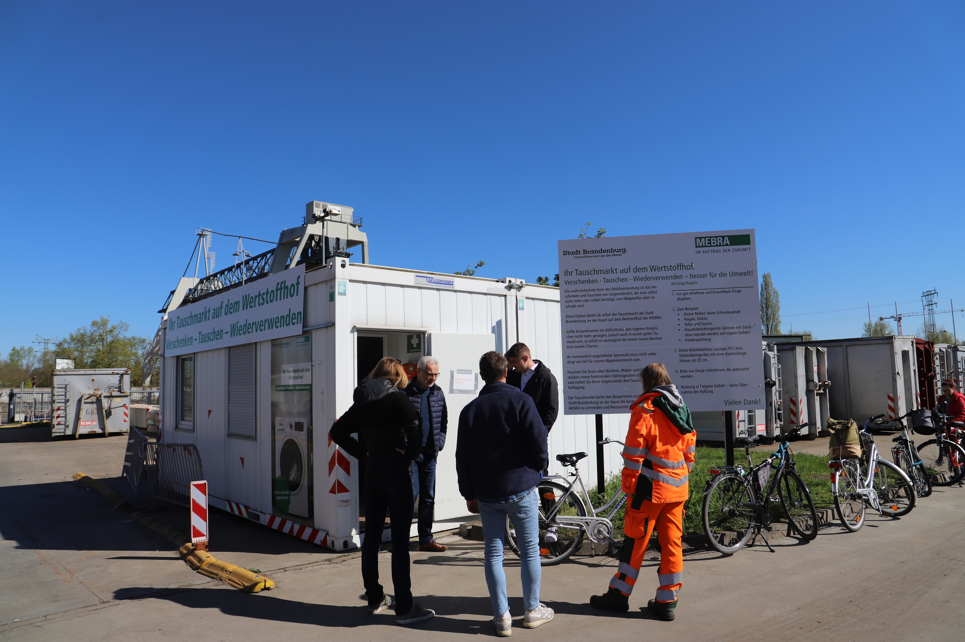 Tauschmarkt auf dem Wertstoffhof etabliert sich Kümmern sich um den Tauschmarkt: Christian Förster, Sachgebietsleiterin Ricarda Löffler, MEBRA-Mitarbeiterin Milene Besser und Amtsleiterin Kirstin Ohme Seit rund