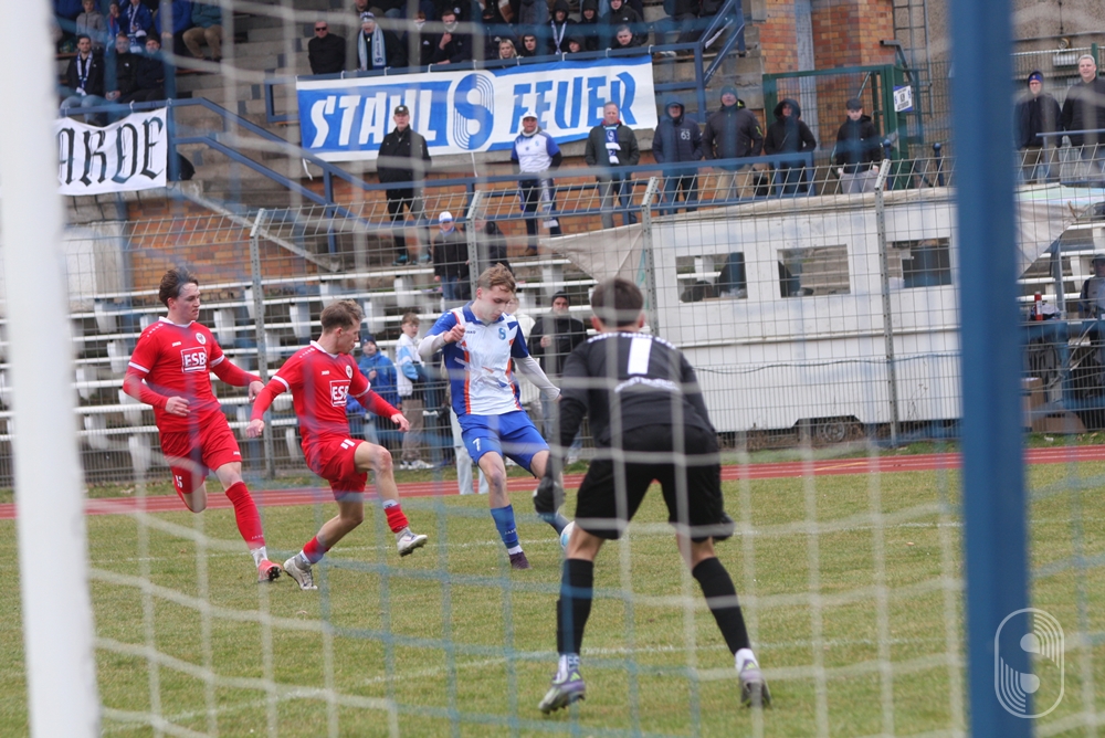 Von dieser Überlegenheit waren die Gastgeber im ersten Durchgang weit entfernt. Die Gäste störten früh den Spielaufbau, die Platzherren hatten Mühe ihren Rhythmus zu finden. Die erste gute Möglichkeit erspielten sich die Nullfünfer in der 12. Minute. Da setzte sich der BSC-Stürmer gut im Sechzehner durch, seinen Schuss parierte Stahl-Torwart Jan Reinicke aber bravourös.