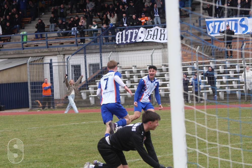 Die Stahl-U19 waren nun klarer Chef im Ring, der Gegner kam zu keinerlei Entlastung mehr. Nur auf das beruhigende 2:0 mussten sie waren. Das fiel in der 85. Minute. Nach einer schönen Kombination über die rechte Seite, kam der Ball zu Marwan Maadanli an die linke Strafraumseite, an seinen harten Schuss bekam Stach zwar noch die Hände ran, doch der Ball war komplett über der Torlinie, da halfen alle Proteste nichts. Praktisch mit der letzten Aktion des Spiels stellte der beste Stürmer in Reihen der BSG Stahl, Ben Bleiß, noch den 3:0-Endstand her.