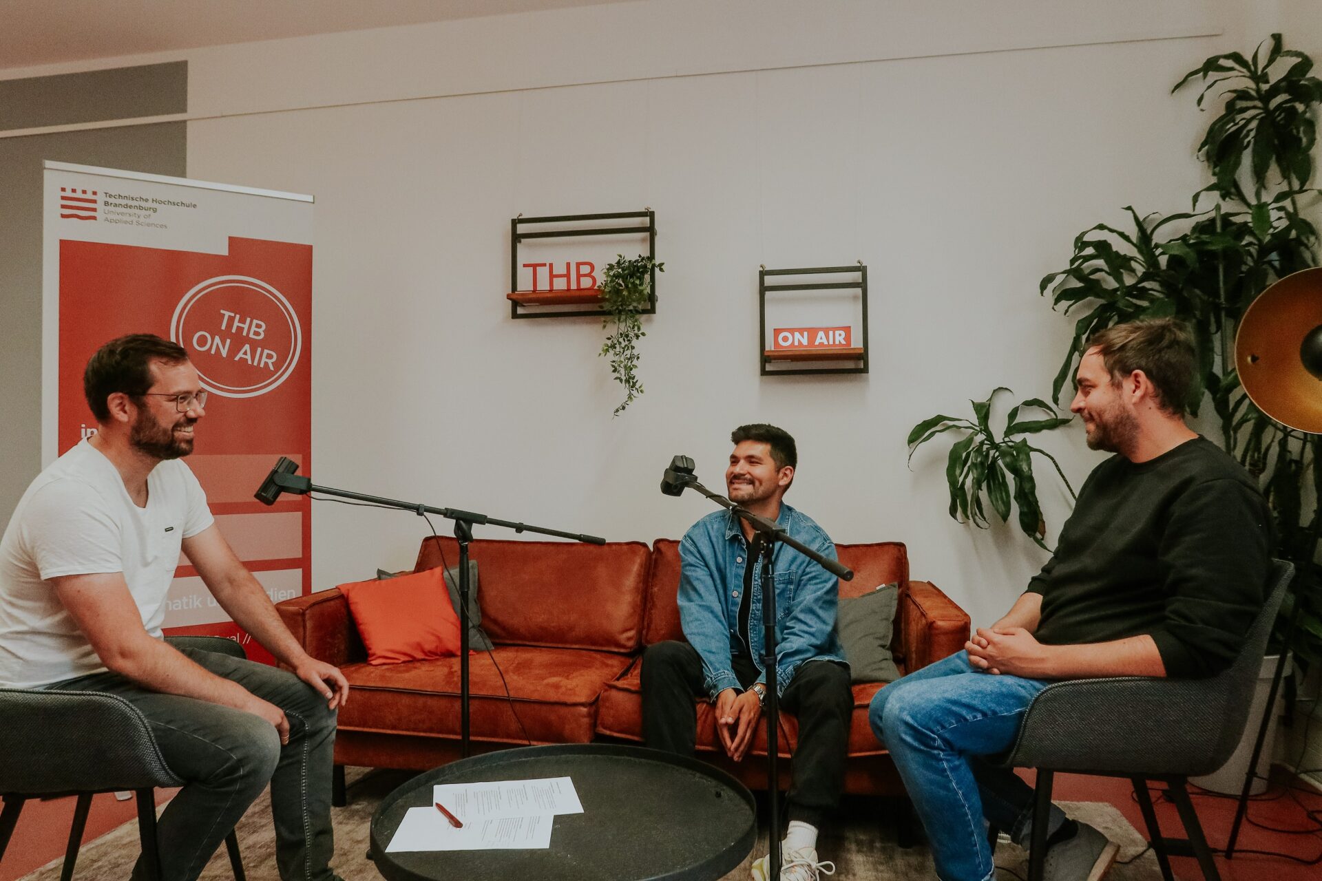 Wissen wirkt: THB startet neuen Podcast Podcast-Host Norman Giese im Gespräch mit den Gründern Heiko Guksch und Marcel Hühn (von links). Foto: THB © Silvia